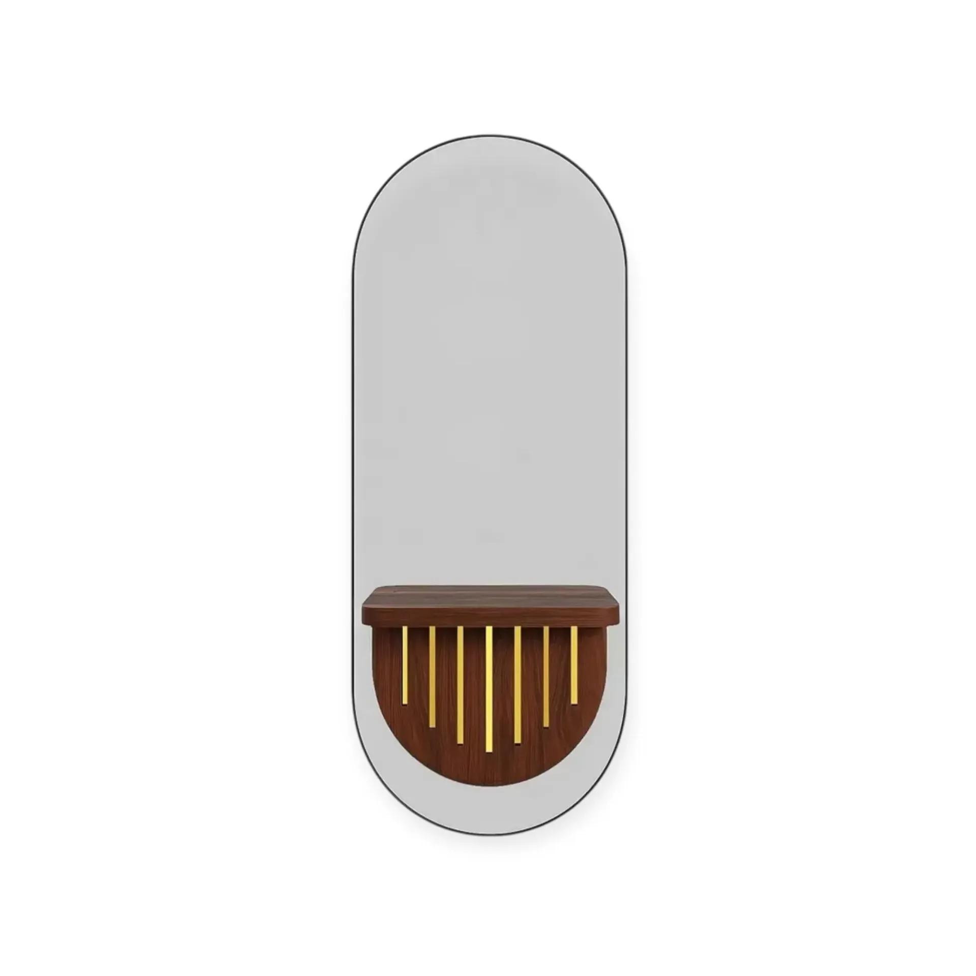 The DITA Salon Mirror JS-05 BAROK – GOLD is a high-end professional hair salon mirror designed for modern hairdressers and barbershops that value both functionality and luxury. With its elegant arched shape, integrated walnut wood shelf and refined gold accents, this salon mirror elevates any professional workspace.